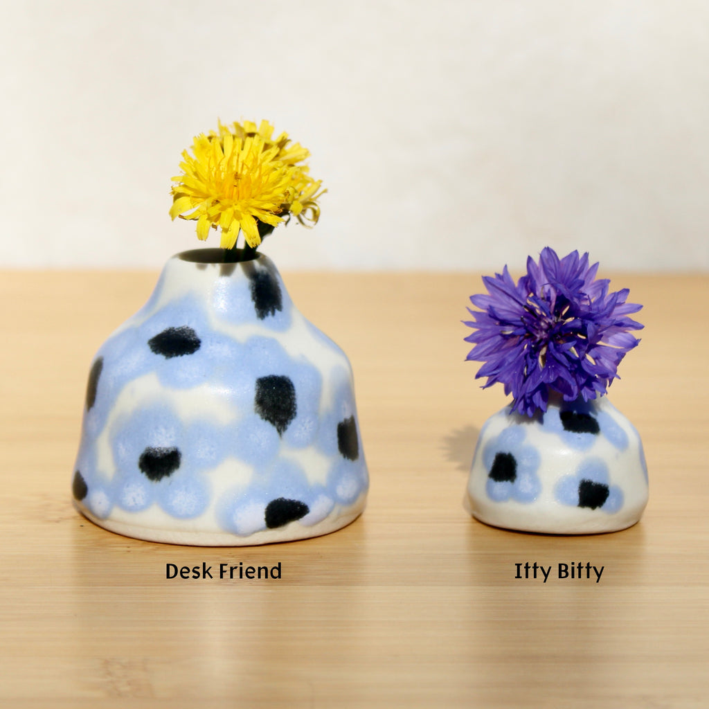 -Made of porcelain and finished in with a satin glaze with hand painted periwinkle flowers.
