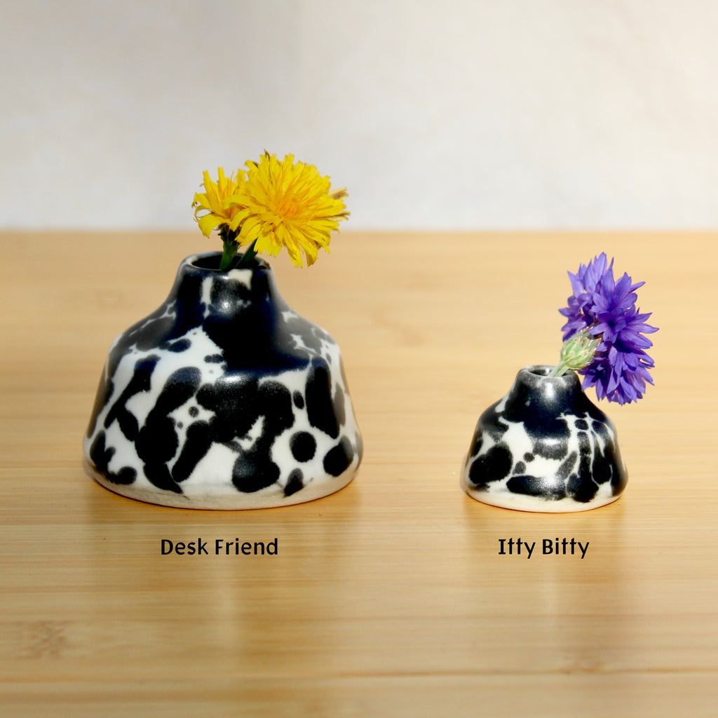 Watch your cuteness aggression folks, cause Itty Bitties are quite the charmers! These small vases are a delightful addition to your desk or mantel, and can hold one small flower.